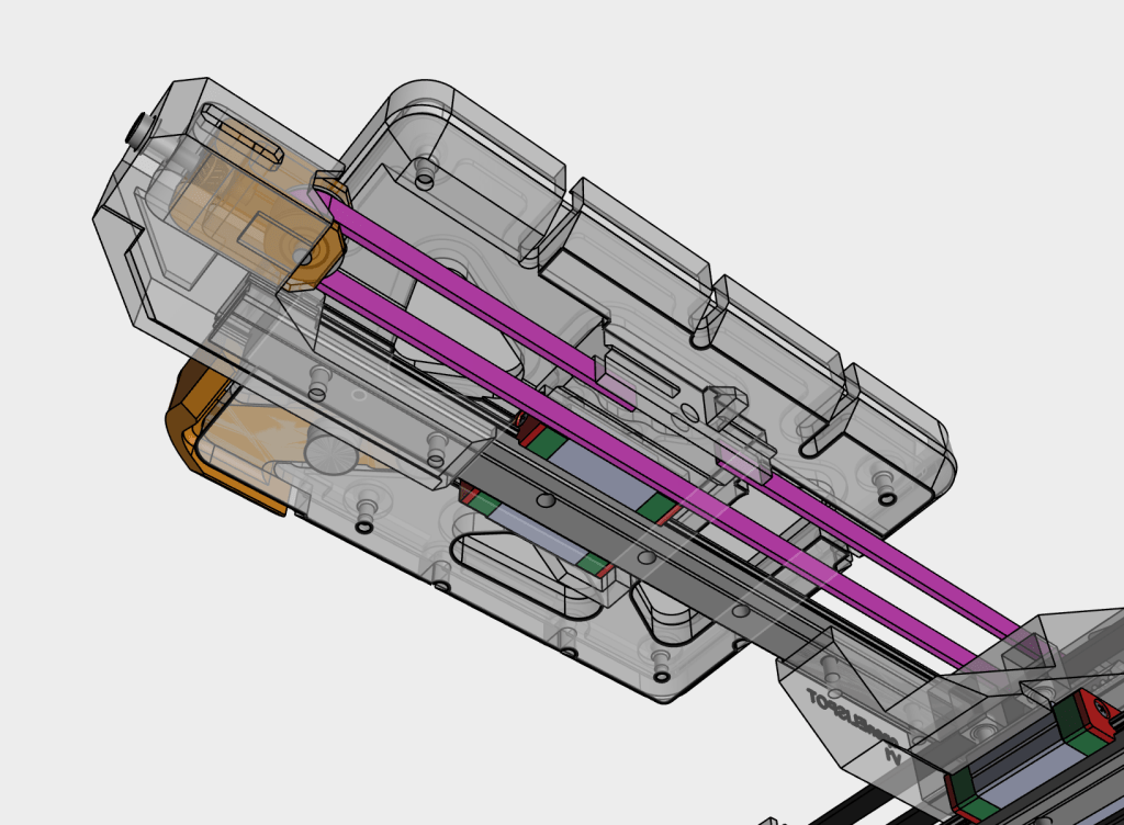 Ensure belt teeth are facing inwards in the loop and open ends terminating at the plate_carriage