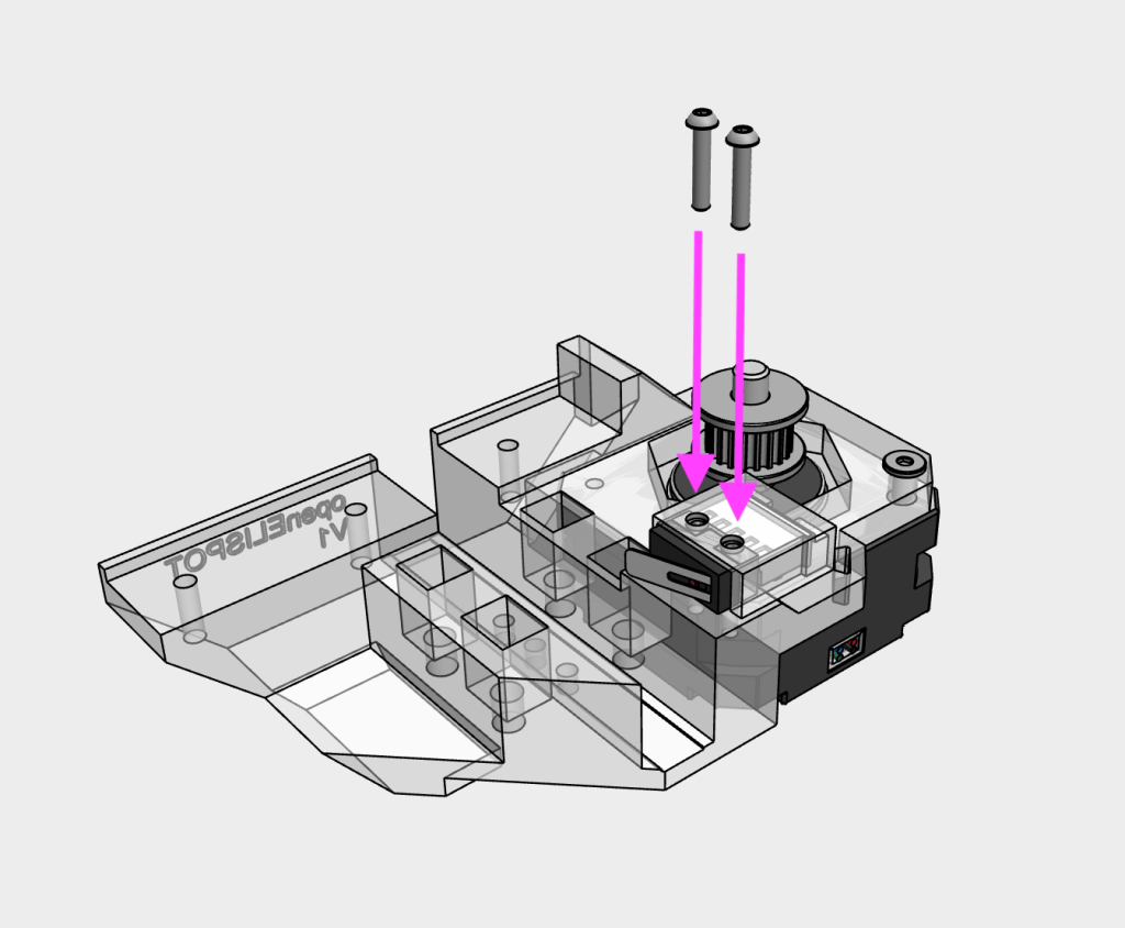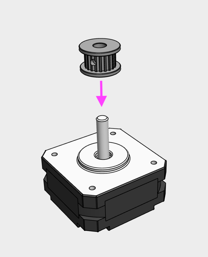 Insert the 6mm GT2 toothed belt pulley onto the x axis stepper motor shaft