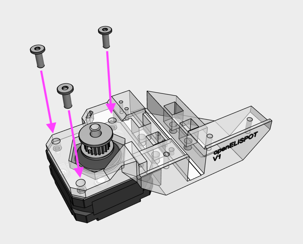 Mount the x axis stepper motor onto the y_monoblock using three M3x8 WHCS screws