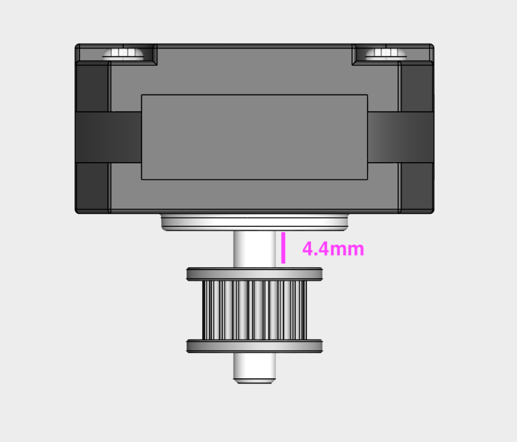 Secure the pulley onto the motor using the included grub screws. Ensure that one of the grub screws is in contact with the flat part of the motor shaft